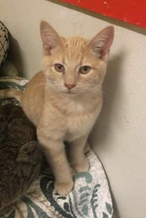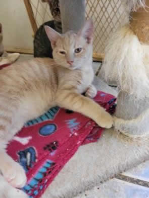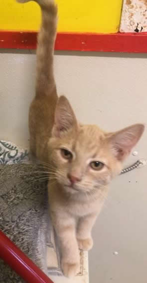ASTER is a creamy yellow fluffy boy who is sooo sweet. Cute as a button, and kind and sweet. ASTER is also very healthy. He plays all day with his siblings and other kitties in his room. ASTER would do better in a home with another kitty or sibling. He was born with many kitties around him and all his young life. We encourage this for adoption.