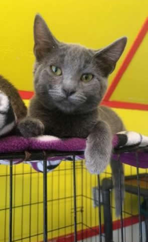 This beautiful girl has a velvety deep grey coat. Very soft and pretty. She is young. Her birthday is April 14th, 2025. She loves playing with her siblings and we suggest she take home a friend to play with her. That is all she knows. She loves to pass out in the sunshine of the door or window and loves her treats. She loves to greet you. The picture above are some of her siblings that can be adopted with her. No dogs.