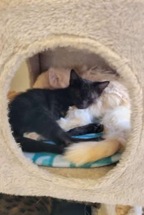 STRATUS is precious and is sweet and shy. After a little while he does warm up with you. CUMULUS is very young and his birthday is April 14th, 2025. He will go to one lucky family for years of memories. He is a true precious looking and acting kitten.