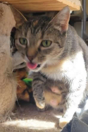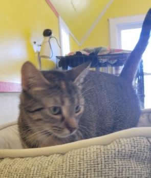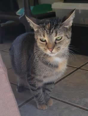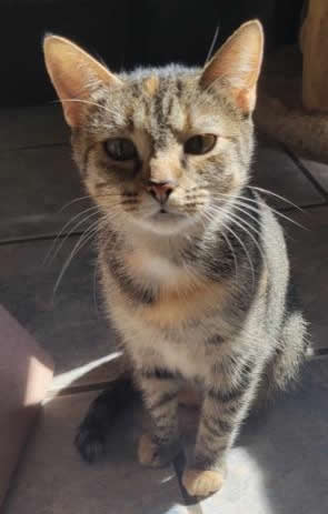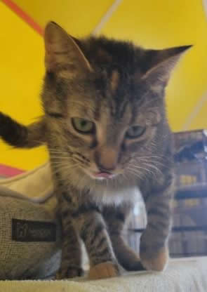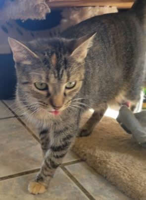 FLOWER is a very pretty tabby with a hint of white on her neck. FLOWER is the young momma of 4 kittens on this site. We received FLOWER when she was very pregnant and she had all 4 babies here on July 1st, 2025. They are now on this site and their names are HYACINTH, ASTER, OLEANDER and DAHLIA. Each name is a beautiful flower, just like their momma. She still acts as a young momma cats to all the other kitties in the room and they all love her. She would do best with another kitty friend, or one of her babies, to be adopted with her, especially younger ones, or if you already have a family kitty at home waiting for a new forever friend. She loves her humans and loves to make love biscuits on you. This is the best kitty and personality.