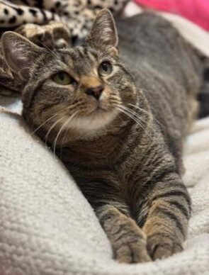LOAF is a handsome declawed male. He is a tabby with very striking colors. LOAF is a BIG BOY! He is large and very healthy. LOAF came in with his girlfriend, STALEY, also a declaw. They are bonded, and will be adopted together. STALEY, the girlfriend, is also on this site to see. No small children or dogs for LOAF and STALEY.