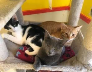 STRATUS! This young boy is a brother to Jasper, Cirrus and Cumulus! There is a picture above of them. They are really loving toward each other. STRATUS is a little bit shy at first but will warm up quickly! He loves his treats and sunshine and toys. He especially loves his siblings, (also adoptable on this site) and we highly recommend that you adopt STRATUS with a buddy or sibling. He really loves his kitty friends.