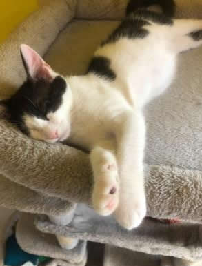 Characteristics: A little bit shy at first but will warm up quickly! He loves his treats and sunshine and toys.