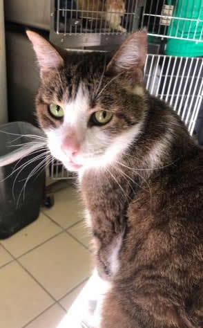 This girl may be 10 years old but is the pick of the crop. She came to us very malnourished and was a trooper and is now very healthy and grateful. She is laid back and is very therapeutic. We love her here. She would be the best laid back family addition and has years left. Don’t be fooled by the 10 years, that is nothing in cat years! They can easily have 8 plus more and this girl is that healthy with a smart personality. She does well with other kitties.